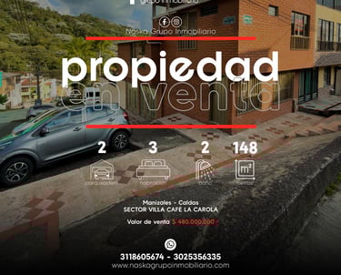 En Naska, somos un grupo inmobiliario con sede en Manizales. Nos especializamos en la venta y alquiler de propiedades, destacándonos por nuestro enfoque personalizado y colores vibrantes, como el rojo.